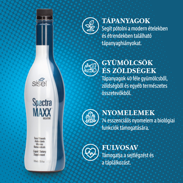 A SpectraMaxx ital 40 erőteljes antioxidánst, 74 esszenciális nyomelemet tartalmaz, így hozzájárul, hogy szervezetünk eredményesen vegye fel a harcot a több mint 2200 féle szabad gyökökkel szemben.
