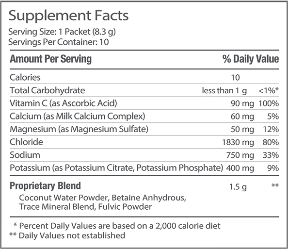 • Recovery: Fuel muscle recovery with vitamin C which supports the immune system, and fulvic powder which helps with the transport of minerals and nutrients into cells.*