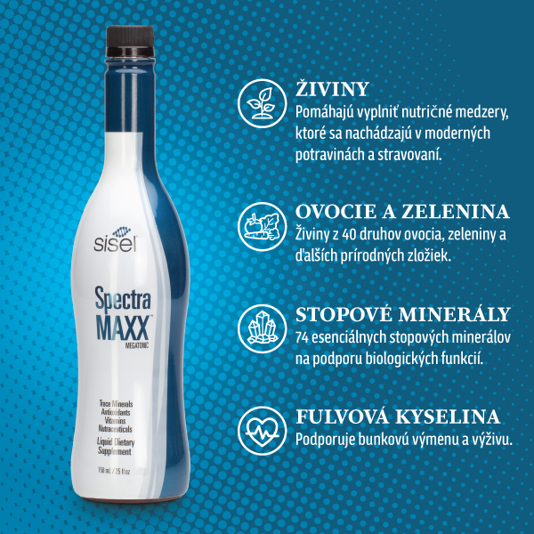 SpectraMaxx® vám poskytne maximum výživných látok od hlavy až po päty. Žijeme v dobe, kedy naše telo čelí nutričnému vyčerpaniu a stupňujúcej sa toxicite. Naše poľnohospodárske postupy sú agresívne a rozsiahle, a nakoniec to, čo utrpí, bude naša pôda a výsledné plodiny. Štúdie v priebehu rokov ukázali, že v porovnaní s rastlinami spred 50 rokov, to, čo konzumujeme dnes, môže obsahovať až o 75% menej cenných živín.