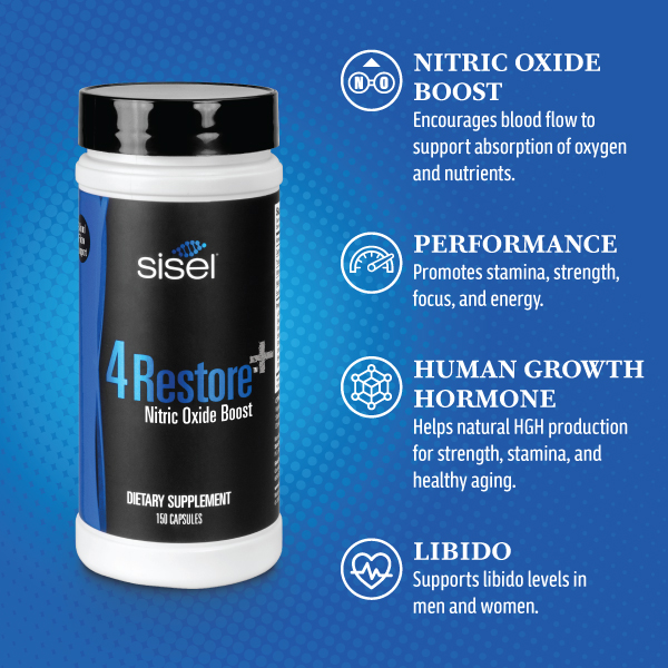 Boost nitric oxide production in your body naturally with 4Restore+, an advanced formula with powerful Nitrosigine® Inositol-Stabilized Arginine Silicate, a fast-acting, superior nitric oxide boost ingredient. This innovative formula increases nitric oxide production in the body and supports blood flow, muscle pump, positive cognitive performance, and healthy aging. *