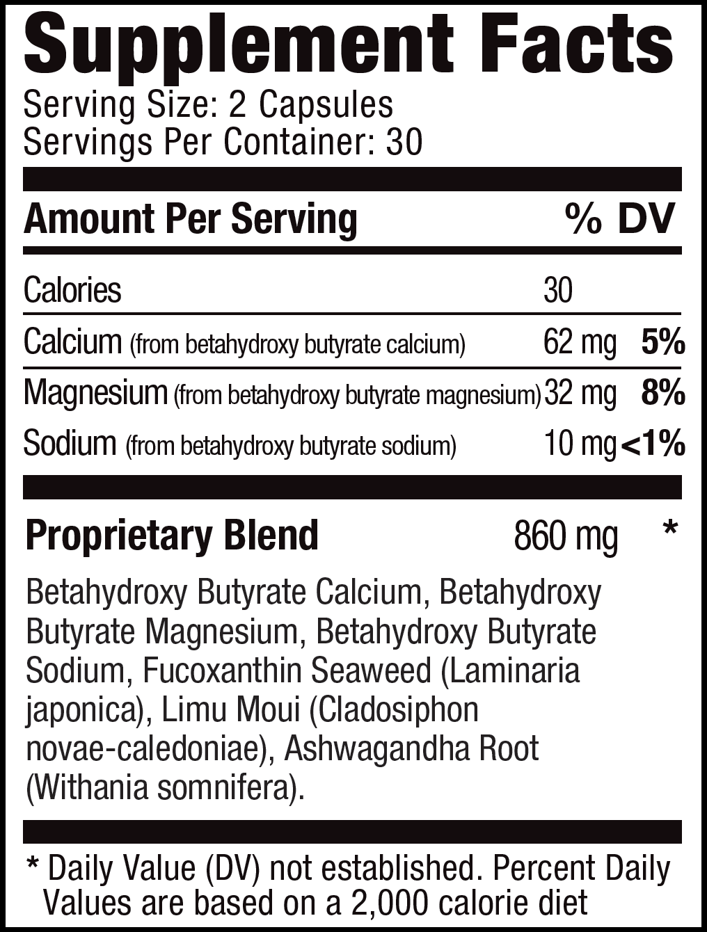 Any weight management product should always be taken in tandem with a change in exercise and diet. One of the most popular diets today is the ketogenic diet—a low-carb, high-fat diet. When followed correctly, this diet puts your body into a metabolic state called ketosis. When in ketosis, your body becomes very efficient at burning fat, converting it into ketones in the liver, which drive metabolism, suppress appetite, support muscle function, and provide focus and energy.